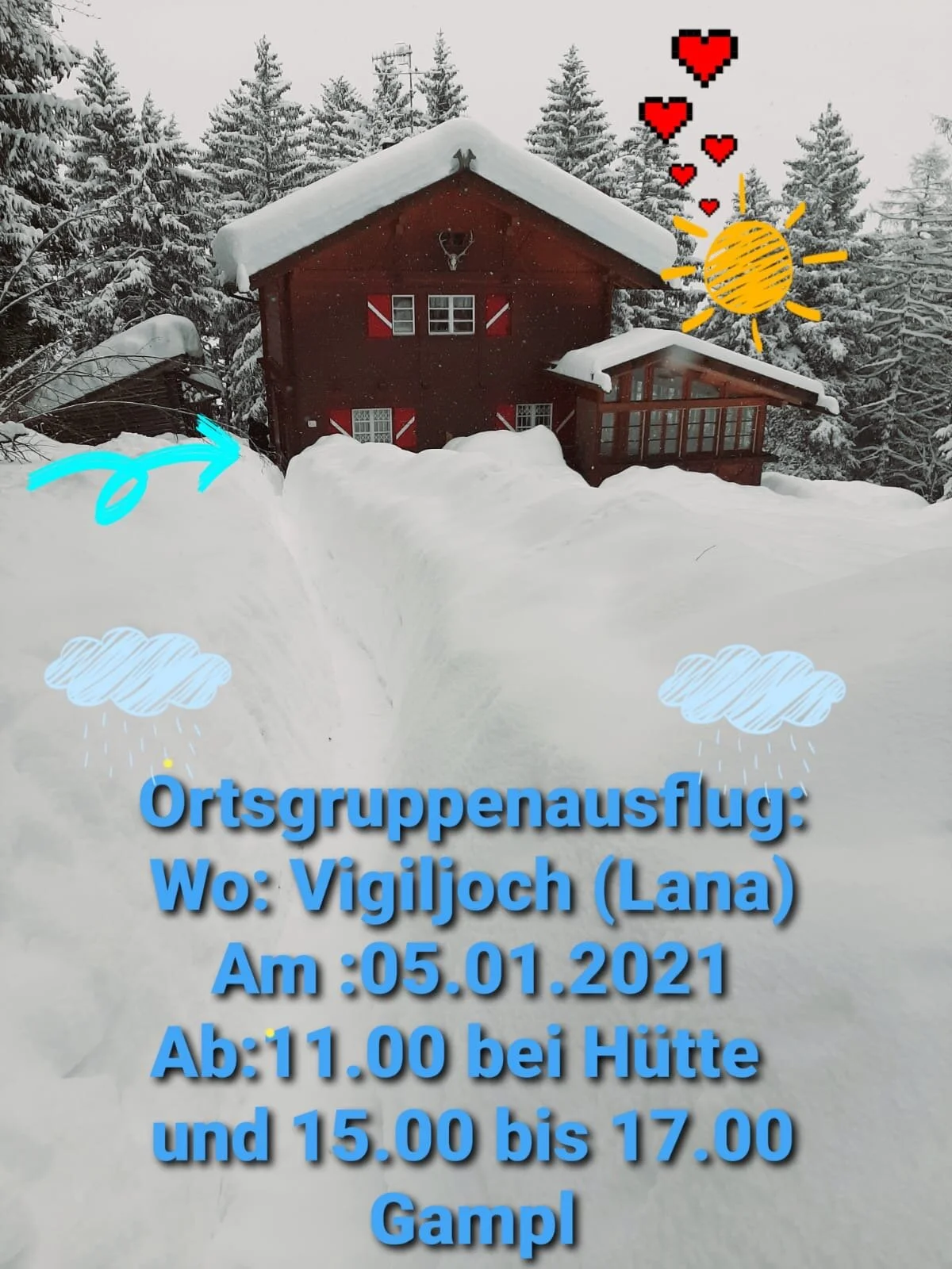 Am Samstag, den 05.01.2021 begrüßen wir mit einem Gemeinsamen Ortsgruppenausflug ins Vigiljoch das neue Jahr!